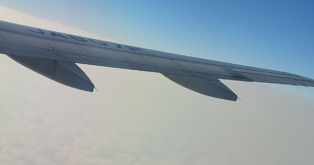 妹妹と弟弟は久しぶりの飛行機。空の景色を楽しんでね。